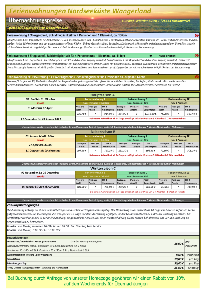 Preise Übernachtung